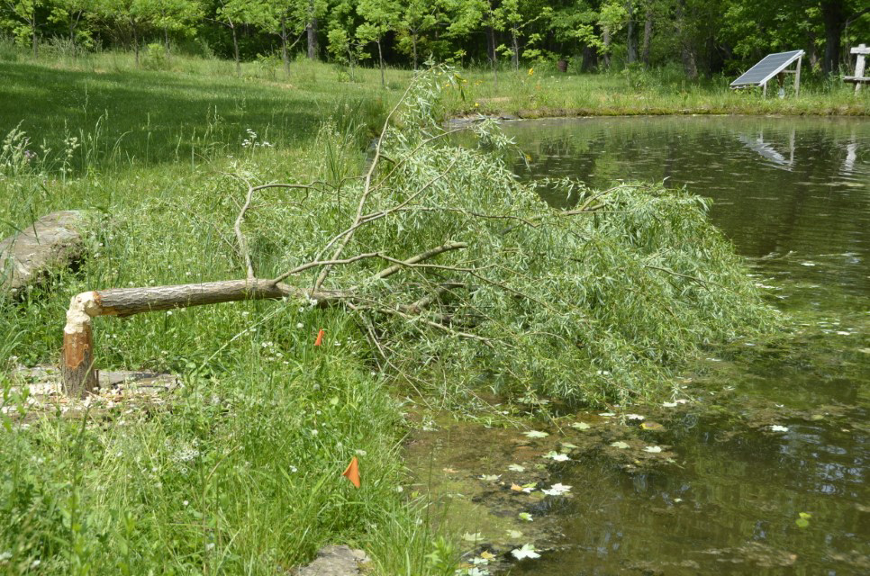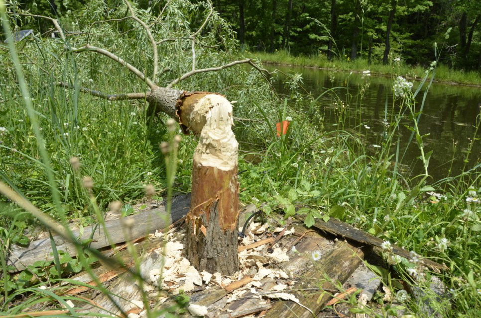 A beaver was chewing down the planted trees.