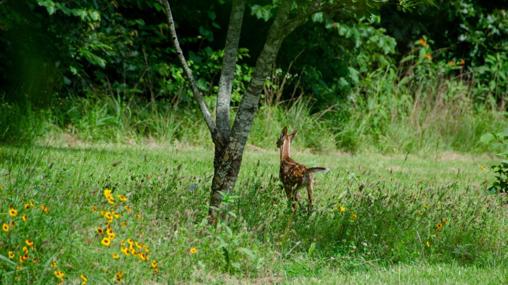 White tail fawn and deer