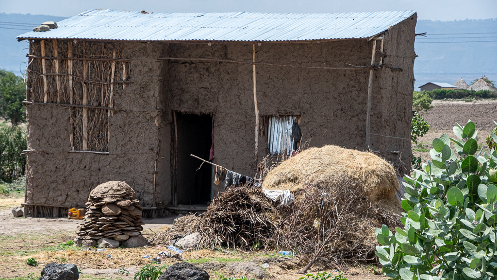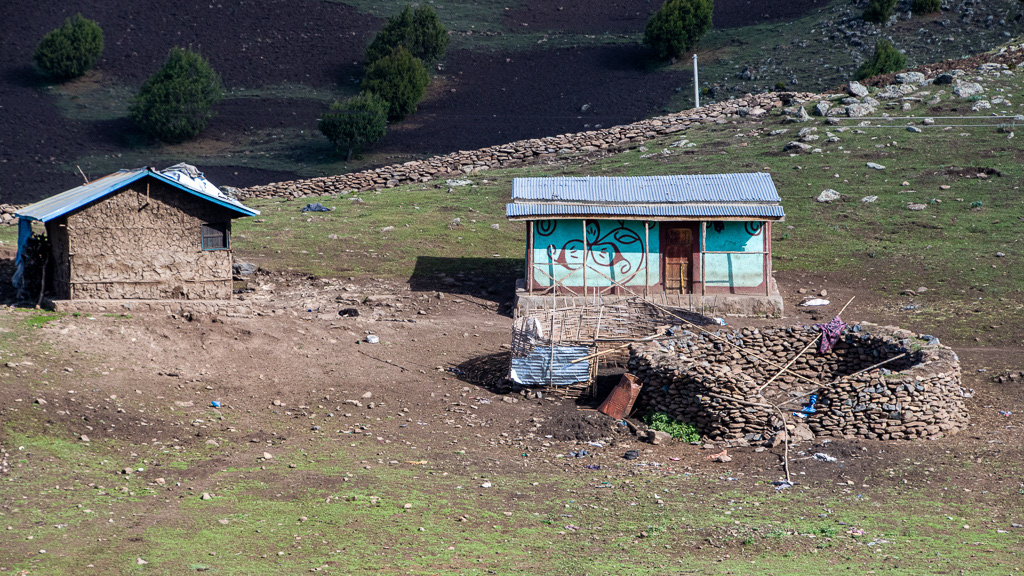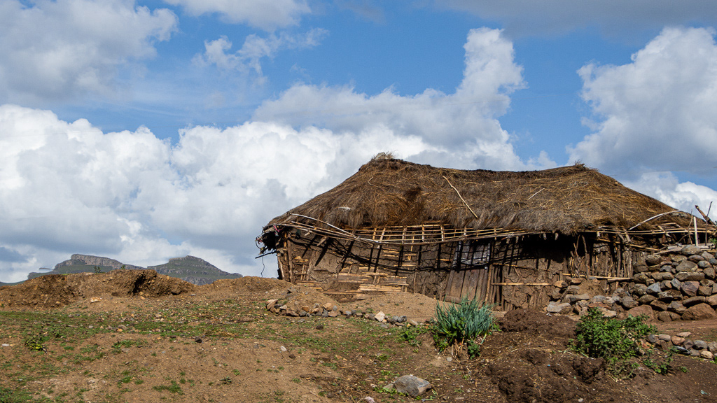 The second type of very common houses are the circular houses called TUKUL. In this one waterproofing of the roof has been done with steel panels under the thatch !
