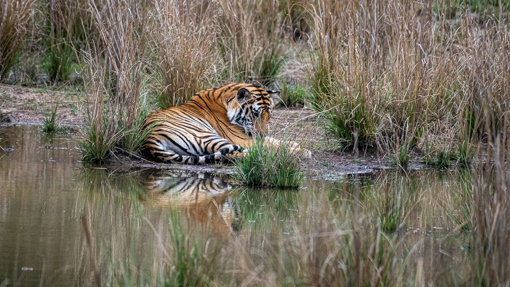 This tiger was resting near a pond waiting for tourist to leave for park closure 😁