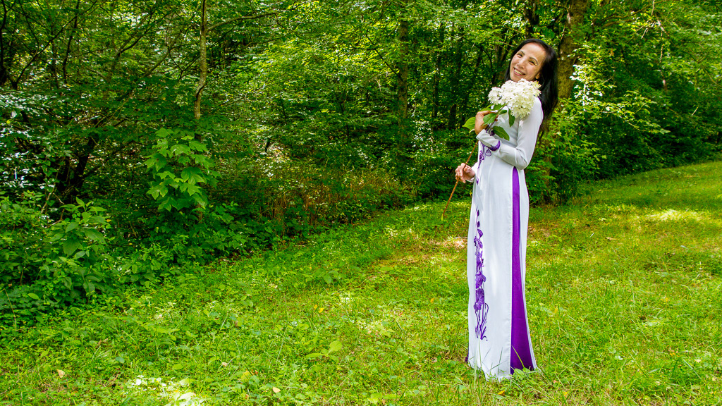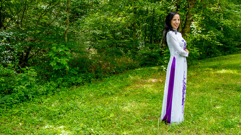 Thao's "ao dai"  (pronounced "oh yai") a gift from Tu