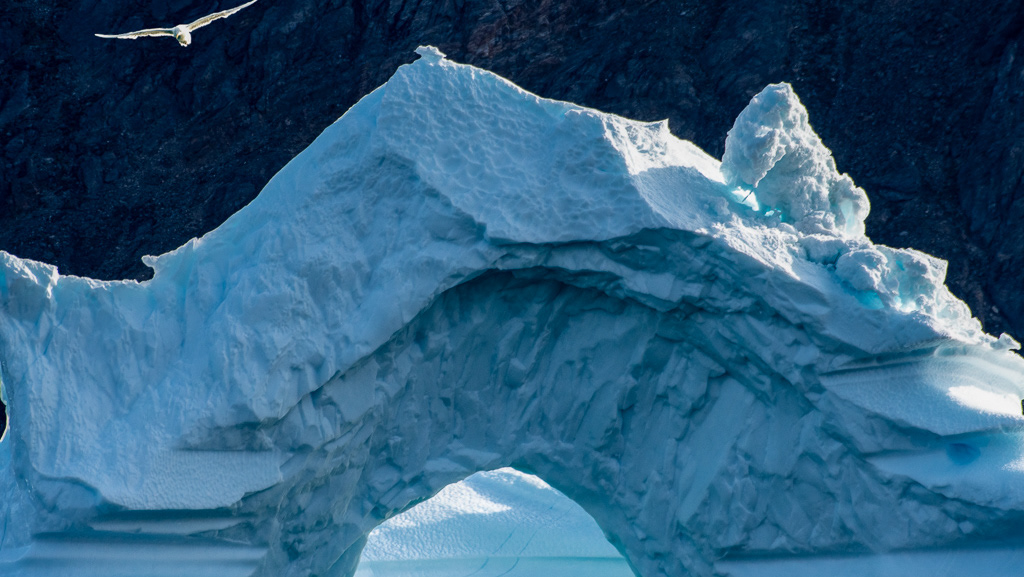 Nearly spherical snow accumulation on a rock