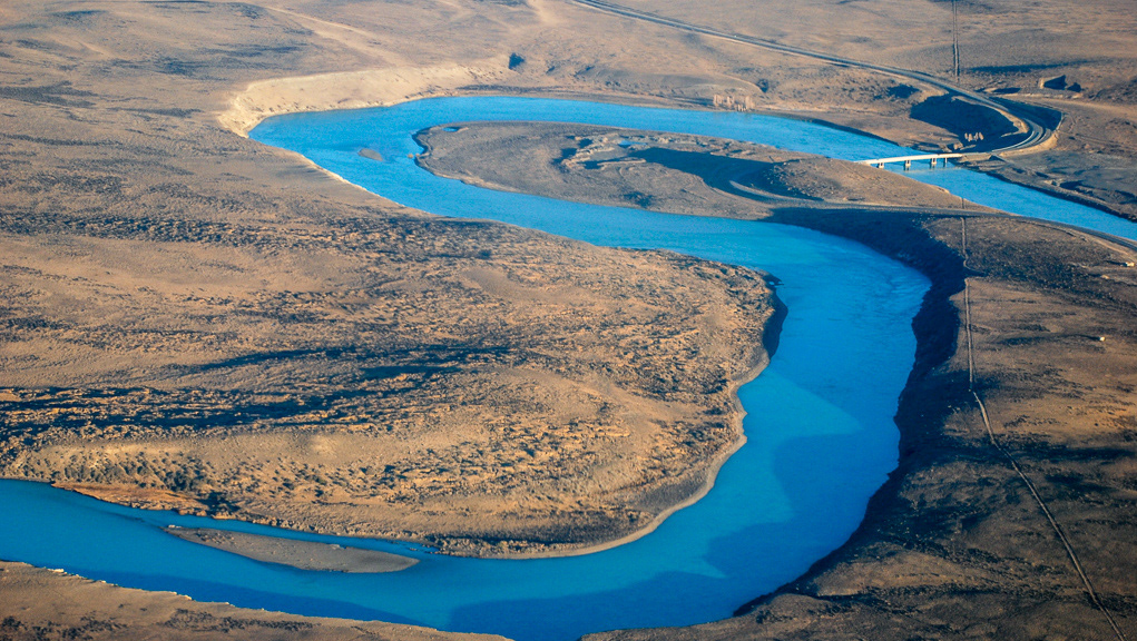 The line in front of this tree is the unfrozen segment of the Yellowstone river (the white in the near part of the image)
